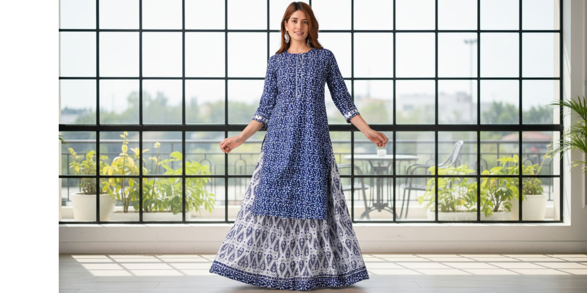 Women’s Indo-Western Printed Gray Kurta with Pants