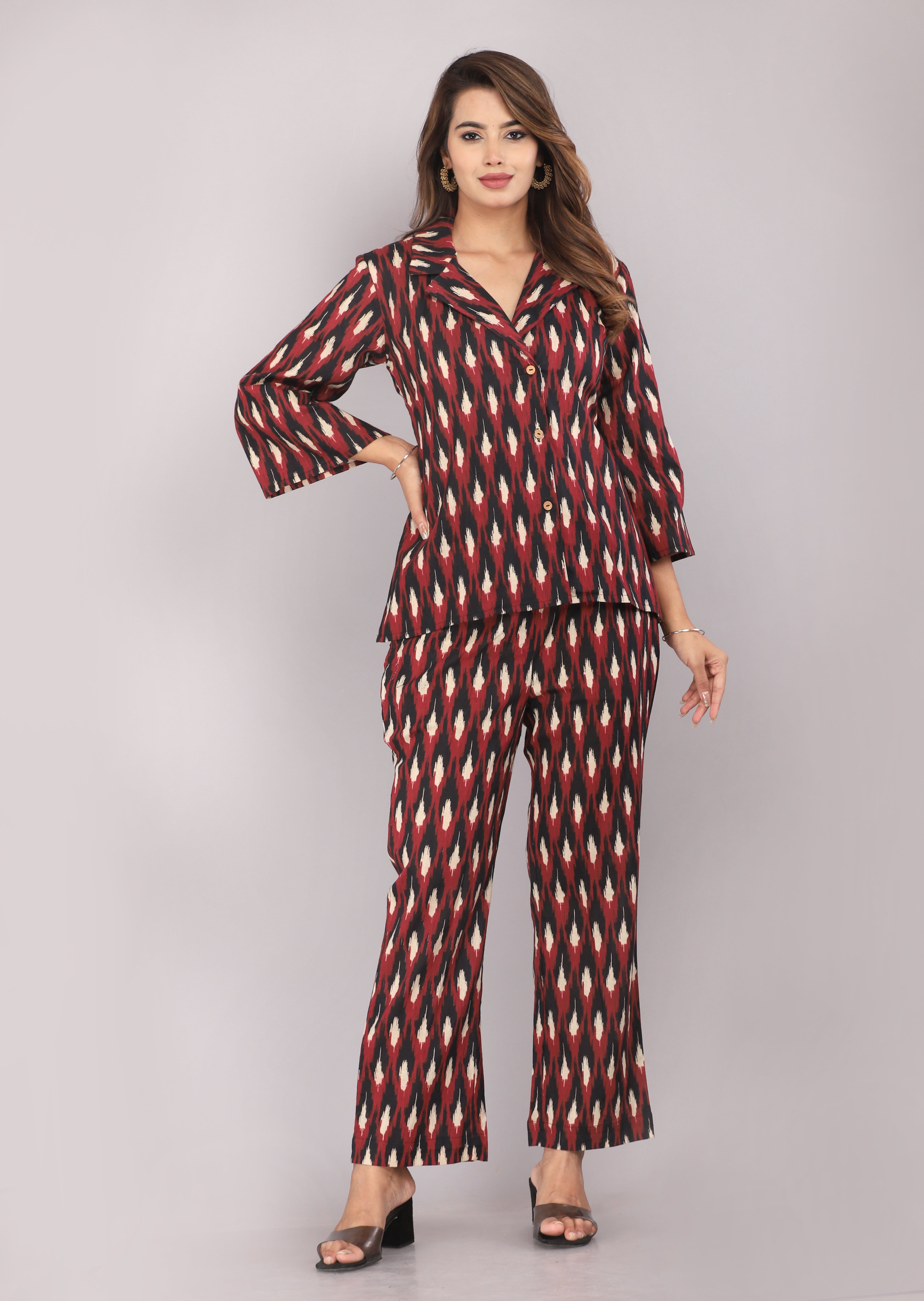 Maroon Ikkat Printed Pure Cotton Co-ord Set
